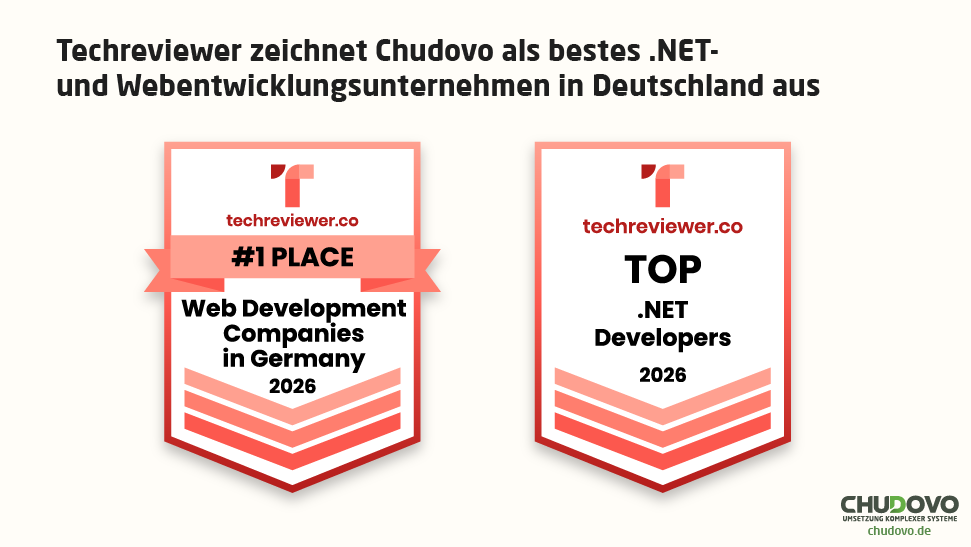 Chudovo wurde von Techreviewer als führendes Softwareentwicklungsunternehmen ausgezeichnet und zählte in verschiedenen Kategorien zu den besten Agenturen.
