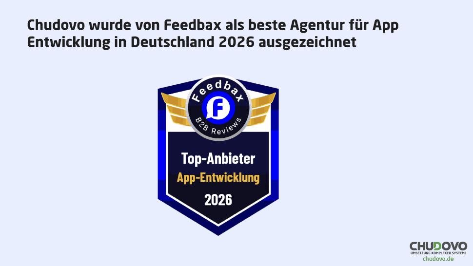 Feedbax hat Chudovo als beste Agentur für App-Entwicklung 2026 in Deutschland ausgezeichnet. Unser Team ist stolz darauf, zu den führenden IT-Dienstleistern für Anwendungentwicklung werden. Wir danken unseren Partnern und Kunden, für die wir uns stetig verbessern, sowie unseren App-Entwicklungsteams, denen wir diese prestigeträchtige Auszeichnung verdanken.